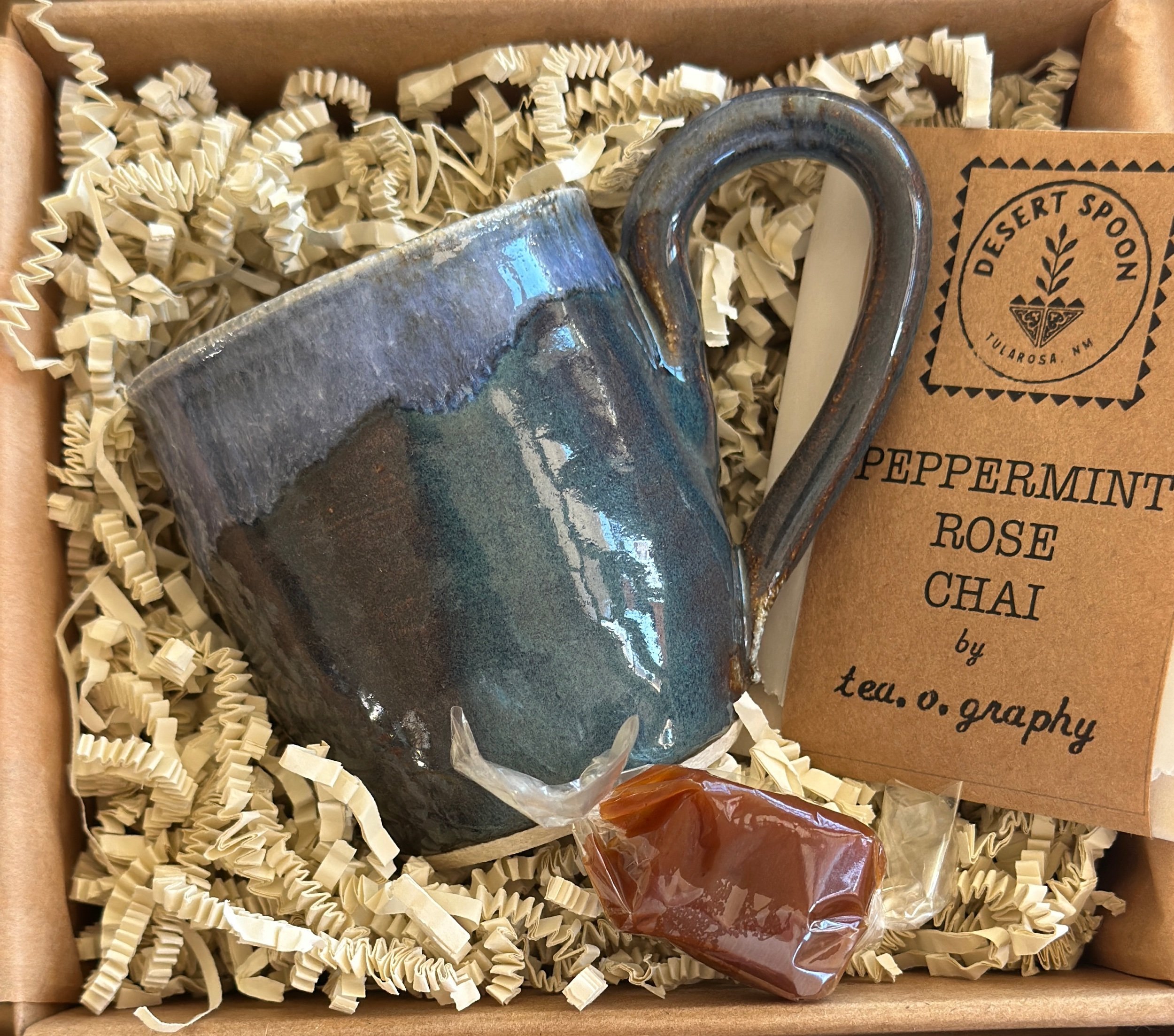 DESERT SPOON STORE › Custom gift box Image 1 of 1 Custom gift box $45.00 sold out Julie Newberg mug, tea-o-graphy tea and caramel. Sold Out Added! Julie Newberg mug, tea-o-graphy tea and caramel.