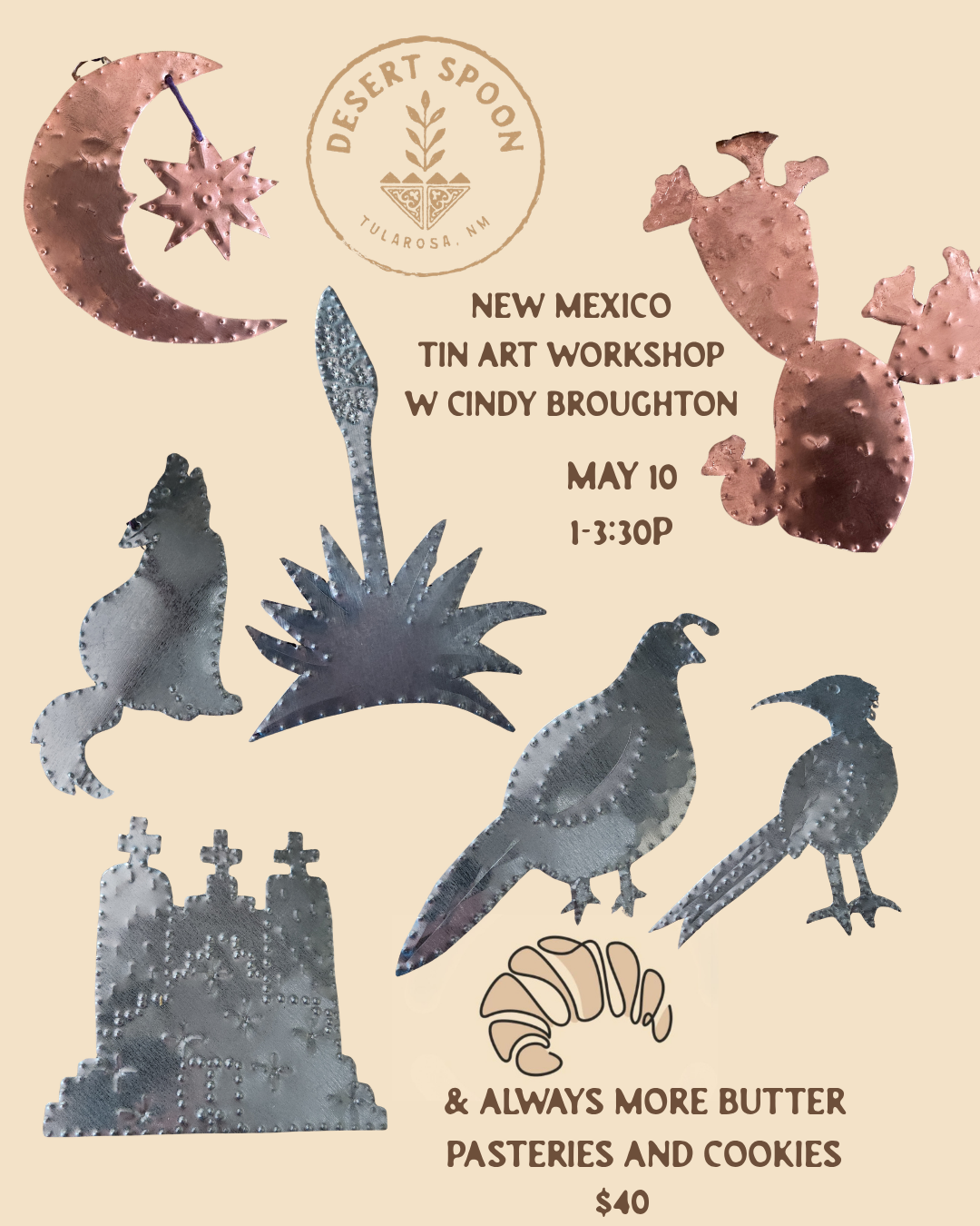 A Special Mother’s Day Edition of: New Mexican Tin Art Workshop with Artist Cindy Broughton and Always More Butter Handmade Pastries and Cookies.